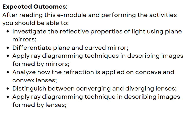 The Learning Bees. (2021, January 14). Images formed on mirrors and lenses Grade 10 Science DepEd MELC Quarter 2 Module 4 [Video]. YouTube. Images Formed on Mirrors and Lenses | Grade 10 Science DepEd MELC Quarter 2 Module 4 – YouTube
